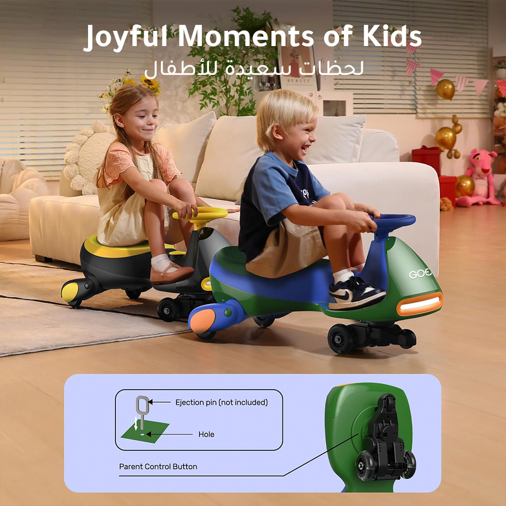 Electric wiggle car stimulate child's imagination and hands-on ability, and also cultivate children's hand-eye coordination, sense of balance. The ergonomically designed extra-large seat can accommodate two kids. This ride-on toy suitable for heights up to 66 inches, weight capacity of up to 150 pounds, so even adults can experience the fun of little ones.