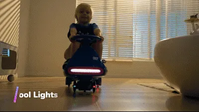 12V battery and 45W powerful motor, max. 4 mph, feel the speed and passion brought by the swing car. You can be adjusted to a low speed mode of 1.9 mph through the plug-in button on the bottom of the car. Pyramid-style double triangular anti-tip chassis, upgraded anti-tip rear wheels and its spring shock system, effectively avoiding sideways tilting.