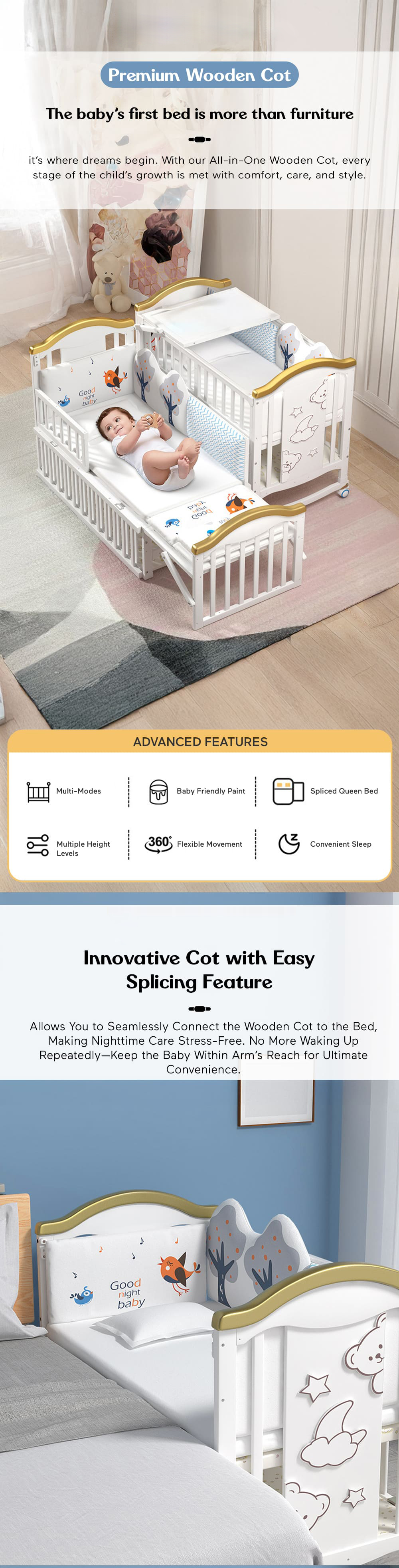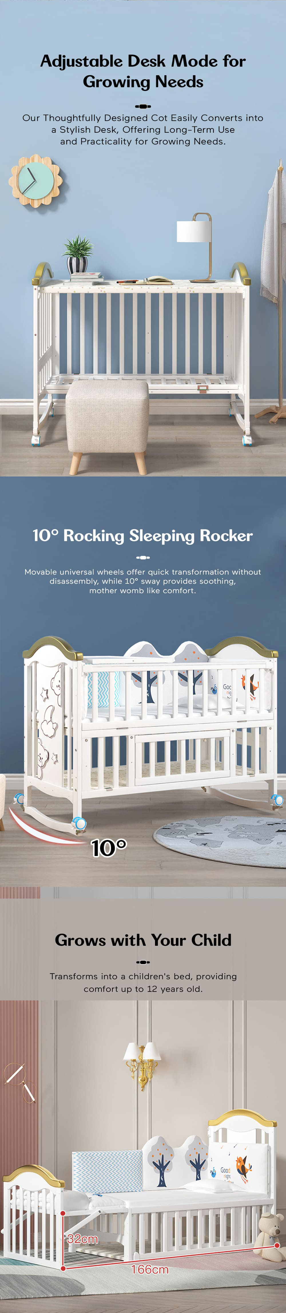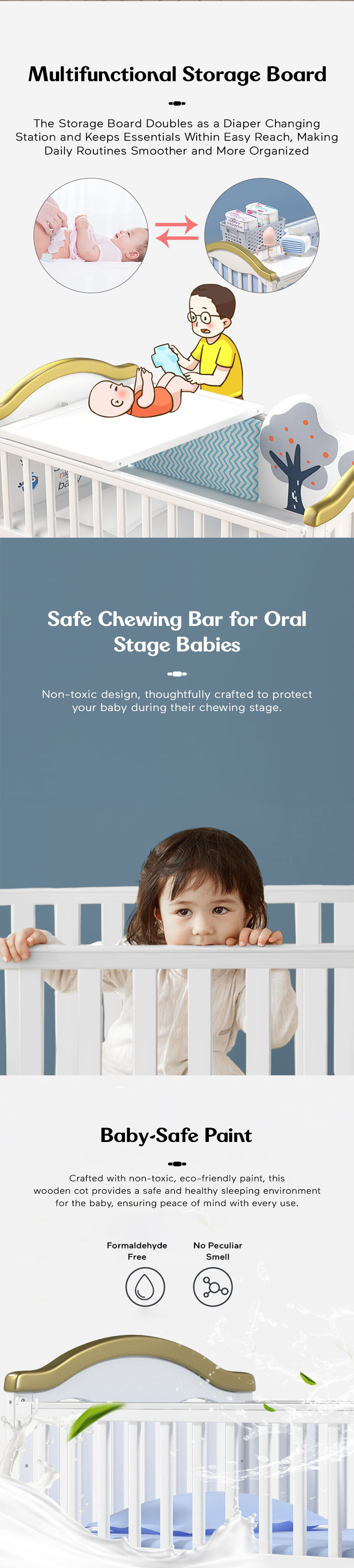 Multifunctional wooden baby crib