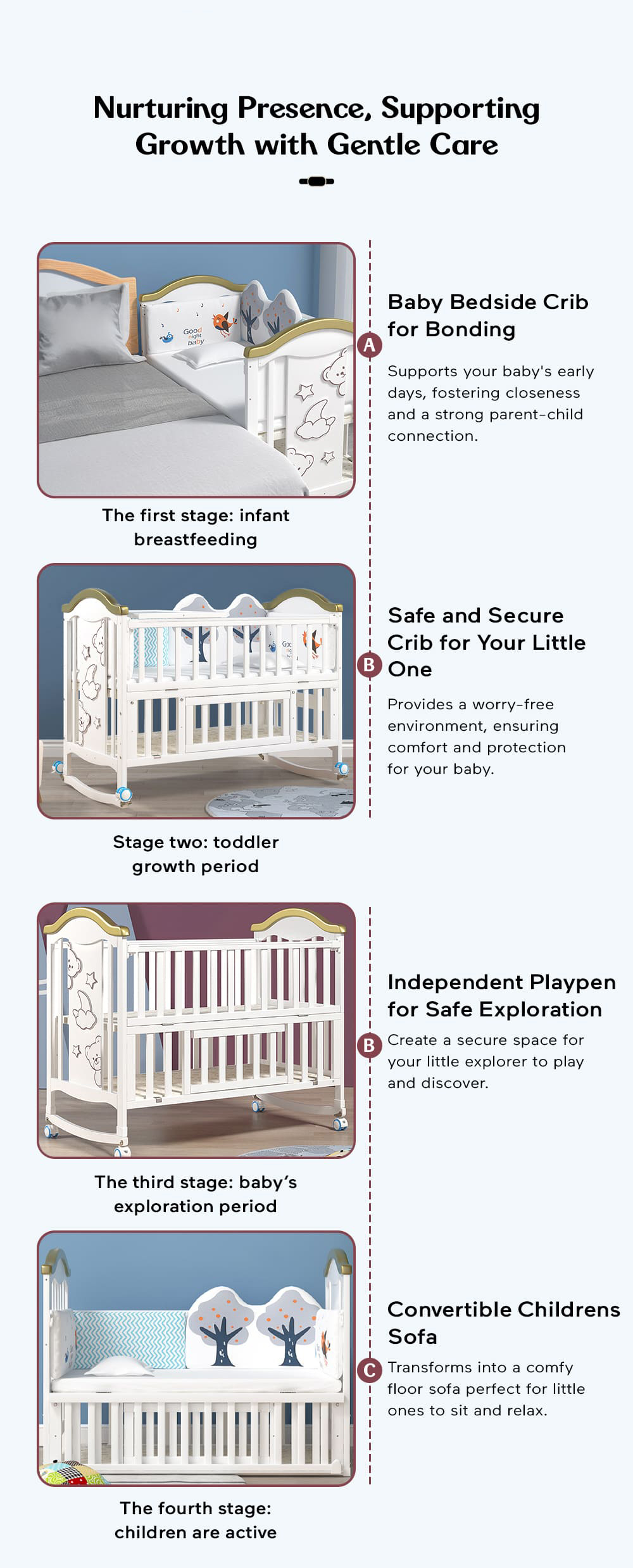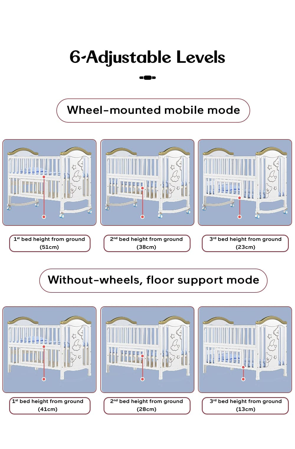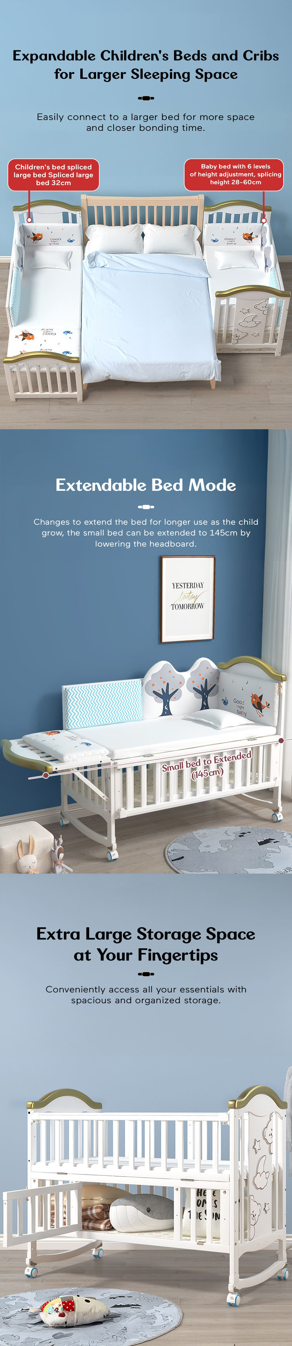 Multifunctional wooden baby crib